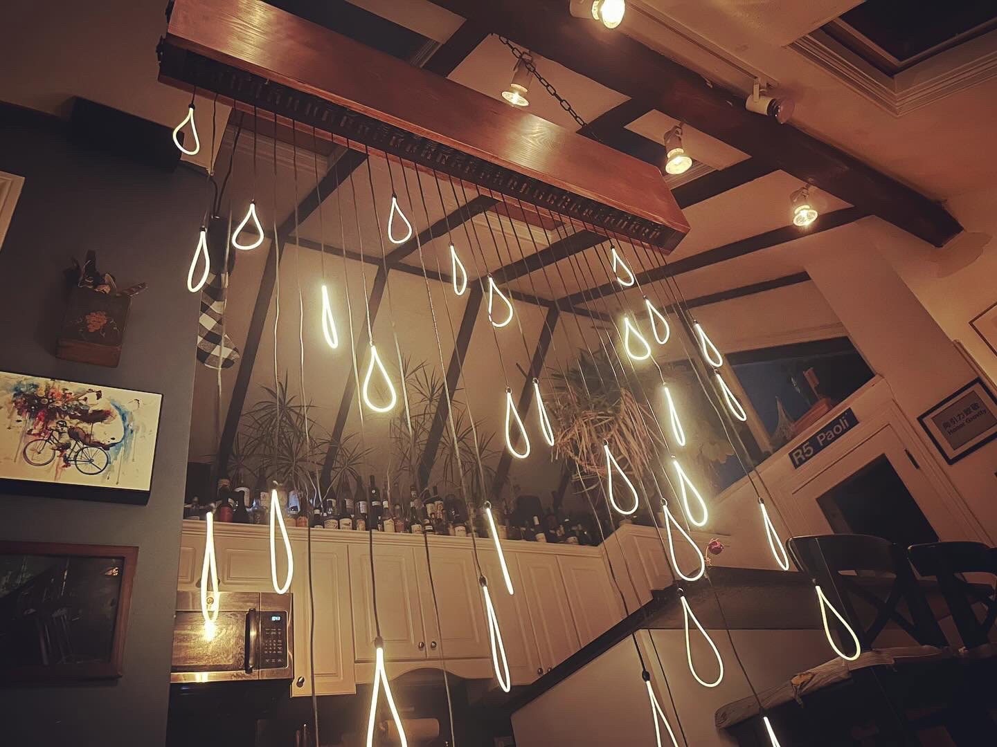 Custom electronics drive the filaments from a central controller, enabling synchronized, music-responsive dimming at the filament, group, or zone level. The modular architecture scales cleanly, supporting custom lengths, groupings, and mounting methods for site-specific layouts while keeping wiring and power distribution neat and serviceable.